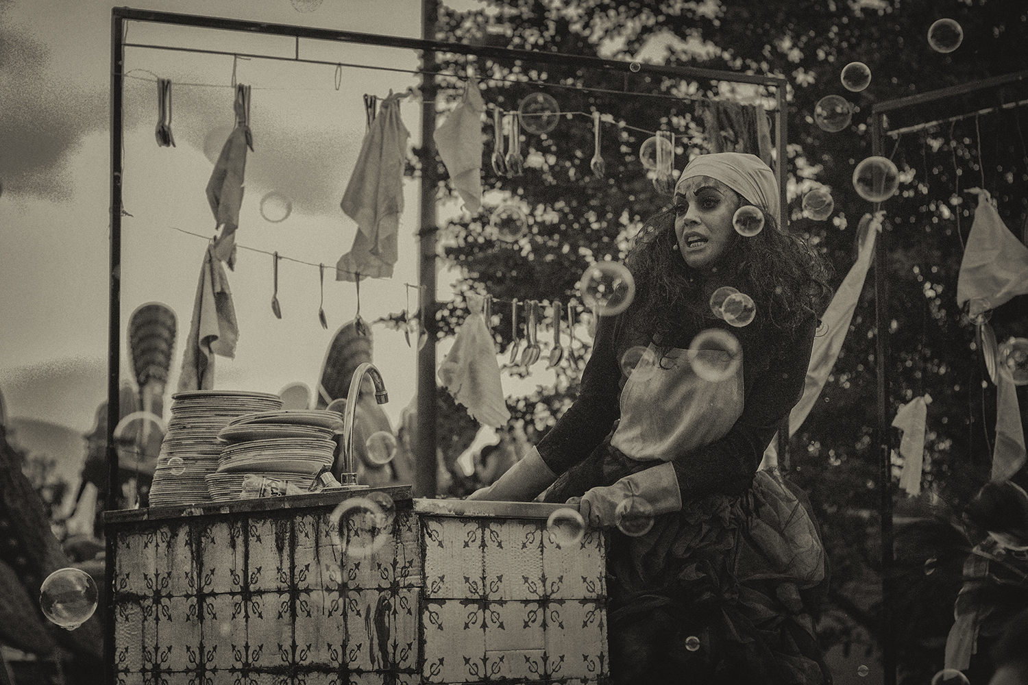En Ciudad teatro, cada actor se confunde entre la realidad y la puesta en escena; tuve la oportunidad presenciar un día en ciudad teatro permitiéndome ver como cada actor construye su personaje junto al público y mimetizarse con cada uno de sus trajes y acciones.