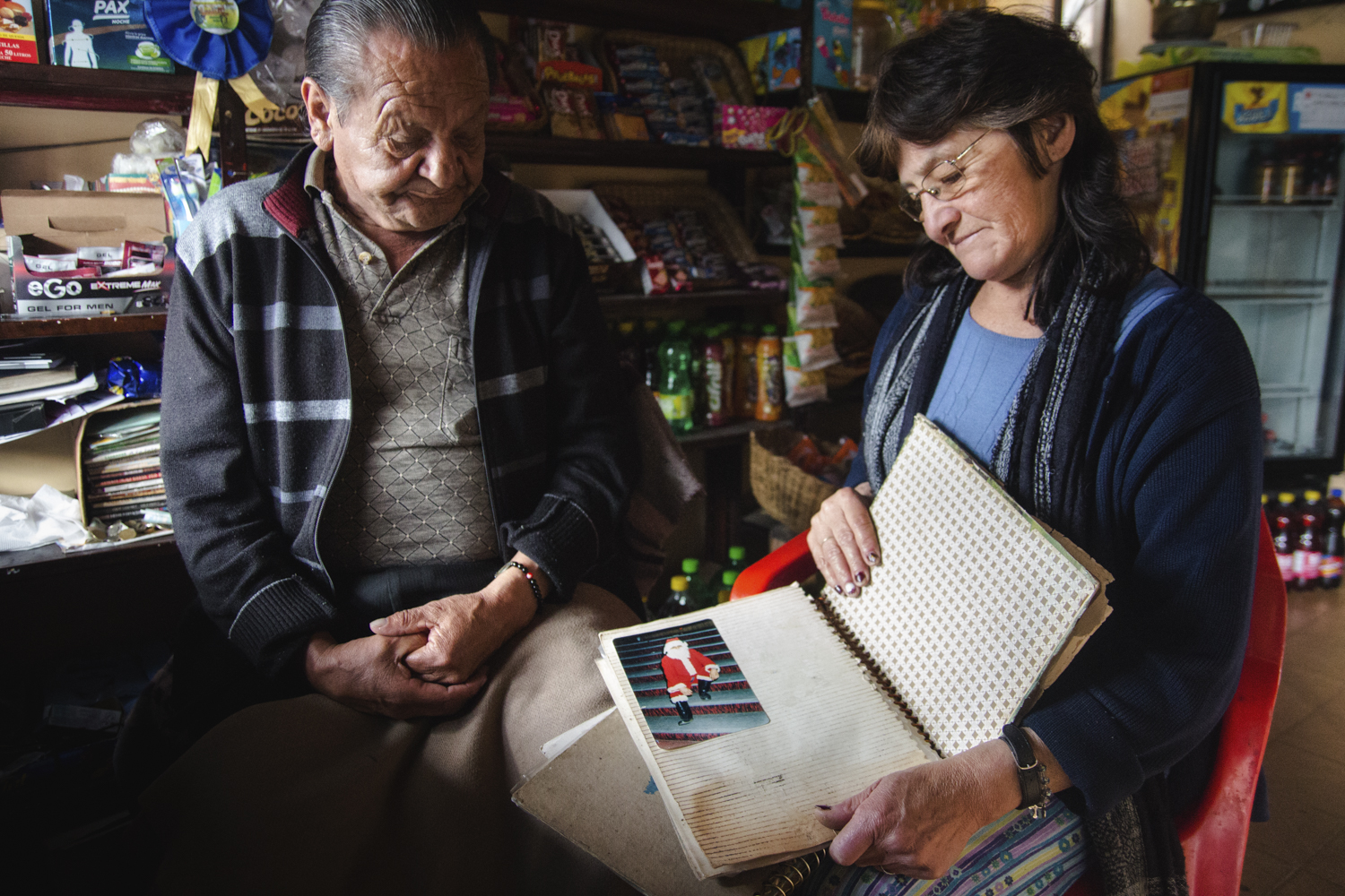El señor Gabriel (65) y su esposa (68) Elsa abrieron su albúm familiar y sus historias hicieron más cálidas las frías noches de Monguí. El abuelo como es conocido Gabriel por los clientes de su tienda ha dedicado sus últimos años a ser un comerciante, su tienda ha estado por diferentes calles de Monguí; sus vitrinas son cestos de mimbre que se llenan de pan, paquetes de papa y dan al lugar la misma calidez que él tiene al “atender”.