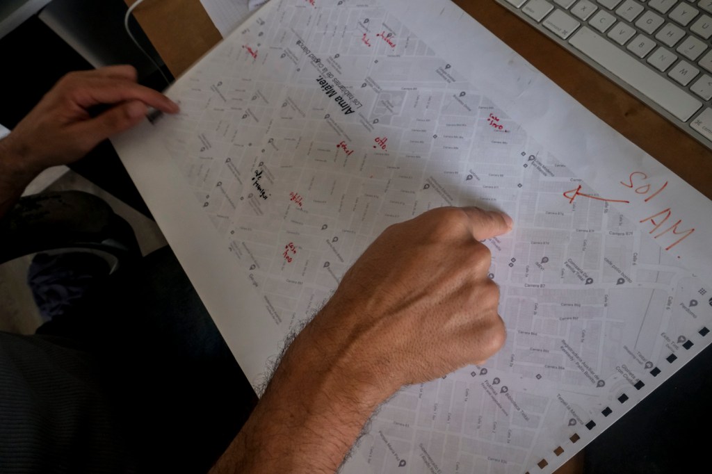 G.S.: Mostrarles que en realidad sí podría haber una visión de ese estilo en ese barrio, sin necesidad de forzarla. Hice varios de estos recorridos por el barrio de noche, de día, yo con la cámara y observando las ocasiones en que entraba la luz, si daba al occidente o al oriente, no sé qué. Para ir decidiendo, porque como estábamos buscando locaciones, tocaba decidir si las locaciones servían o no. Con esto ya el equipo quedó más entusiasmado.