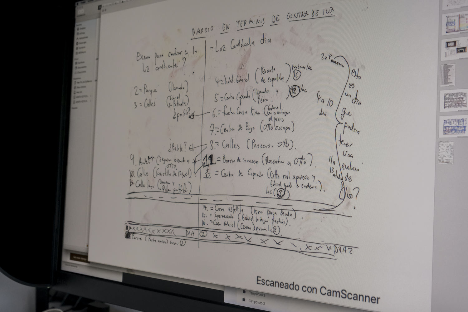 G.S.: Sí, exacto. El guión tenía unos dibujos y todo. Entonces, había un planteamiento con algunas decisiones visuales ya estructuradas. Eso puede pasar mucho con los directores, sobre todo cuando el director escribe la película. En realidad, tiene claras ciertas cosas, y uno, como director de fotografía, el truco es potencializar esas ideas o tener la capacidad también de decirle: «Bueno, esto, pero en realidad sí o en realidad no. Si le conviene, piénselo». Bueno, él es el que decide siempre, obviamente, pero sí, uno está en ese trabajo.
