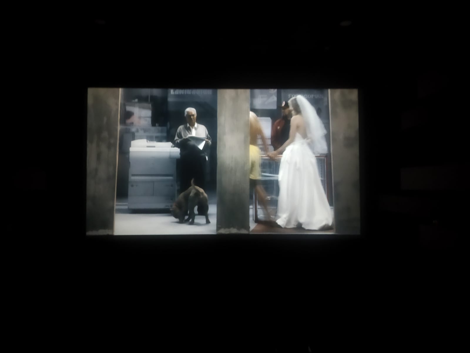A.O.: Por otro lado, el plano de la papelería me parece bellísimo (fig. 13), donde comienza la parte surrealista, que ellos se van a casar en la papelería. La simetría que hay en esos dos espacios donde entran a casarse y está la otra persona que va a sacar la fotocopia.