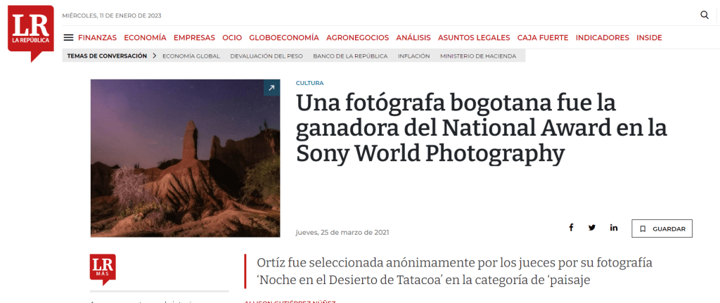 Una fotógrafa bogotana fue la ganadora del National Award en la Sony World Photography